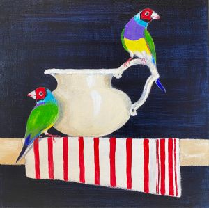 Gouldian Finches and the Cream Jug